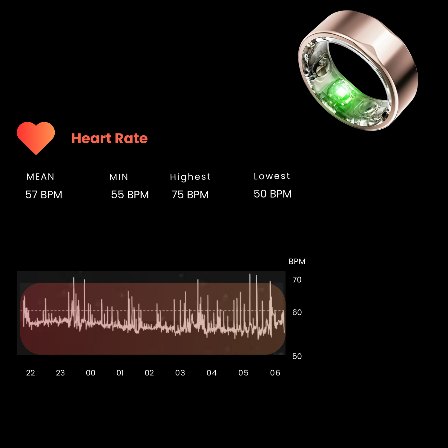 Mit kontinuierlicher Schlafüberwachung und tiefgehender Analyse ist der Glucose Smart Ring Ihr persönlicher Schlafcoach — er führt Sie zu besserer Ruhe, verbesserter Erholung und allgemeinem Wohlbefinden.